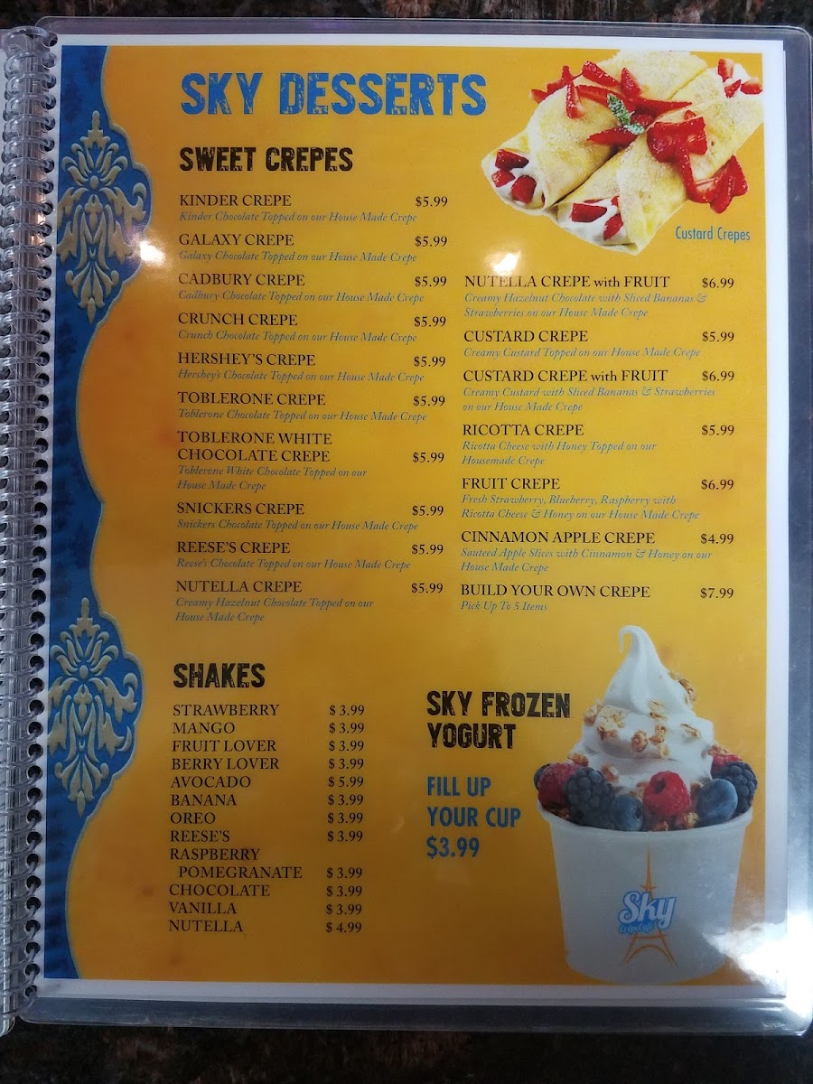 Welcome to Sky Crepe Cafe, a hidden gem located at 7120 Schaefer Rd, Dearborn, MI. As a food reviewer, I'm excited to share my delightful experience at this charming cafe. Known for its inviting atmosphere and a diverse menu ranging from savory crepes to delicious burgers, Sky Crepe Cafe truly stands out in the bustling East Dearborn dining scene.